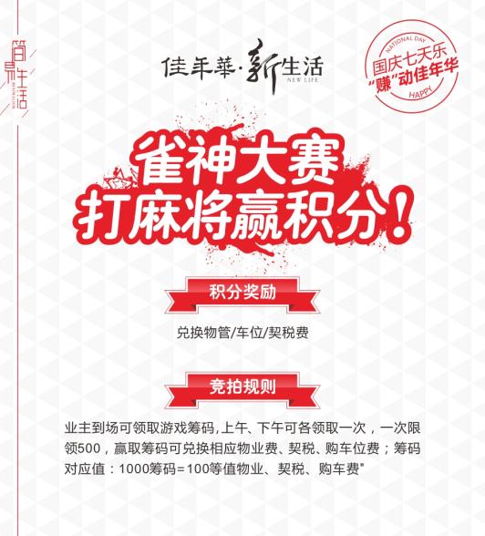 参加佳年华雀神争霸大赛,物管费、车位款、契税免免免!!